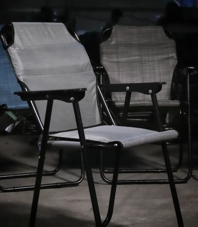 این صندلی مبلی جنس رویه آن از برزنت و جنس پایههای آن گالوانیزه بوده که تا وزن 120 کیلوگرم را تحمل میکند. این راحت نشین با پایه را میتوان به راحتی جمع کردبه دلیل وزن کم(2.700کیلوگرم) و زیبایی و در سفر به همراه برد.