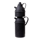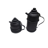 کتری و قوری شامورتی ، محصولی کاربردی برای تکمیل تجهیزات سفر و کمپینگ شما است که تولید شده از جنس آلمینیوم نسوز با تنوع رنگ مشکی از نوع کوره ای می باشد . این کالا مشتمل بر یک کتری استوانه ای با ظرفیت تقریبی 1 لیتر به همراه قوری نیم لیتری بوده . طراحی استوانه ای و باریک تر از حالت معمول کالا باعث شده تا سریع تر آب درون کتری به نقطه جوش برسد ، خصوصیتی که صرفه جویی در زمان را برای شما به همراه خواهد داشت . قوری گداجوش نیز همانند کتری دارای طراحی منحصر به فرد و متفاوتی می باشد ، سطح زیرین قوری دارای پهنای بیشتر همراه با درون رفتگی قسمت میانی برای قرارگیری بر روی دهانه کتری است ، به طوری که به راحتی بتوانید قوری را بر روی کتری گذاشته و بردارید بدون اینکه نگران سر خوردن و یا عدم قرارگیری صحیح و افتادن قوری از روی آن باشید . برای کتری علاوه بر دسته کناری ، یک دستگیره مجزا جهت جابه جایی ساده تر تعبیه شده و قوری نیز دارای یک دسته مجزا برای خود می باشد . درب های هر دو کالا با استفاده از زنجیر به دسته ها متصل شده اند تا مانع از افتادن و یا گم شدن آنها شود . پس همه چیز برای تهیه و میل یک چای گرم آتشی در سفر ، کمپینگ و پیک نیک مهیا خواهد بود .