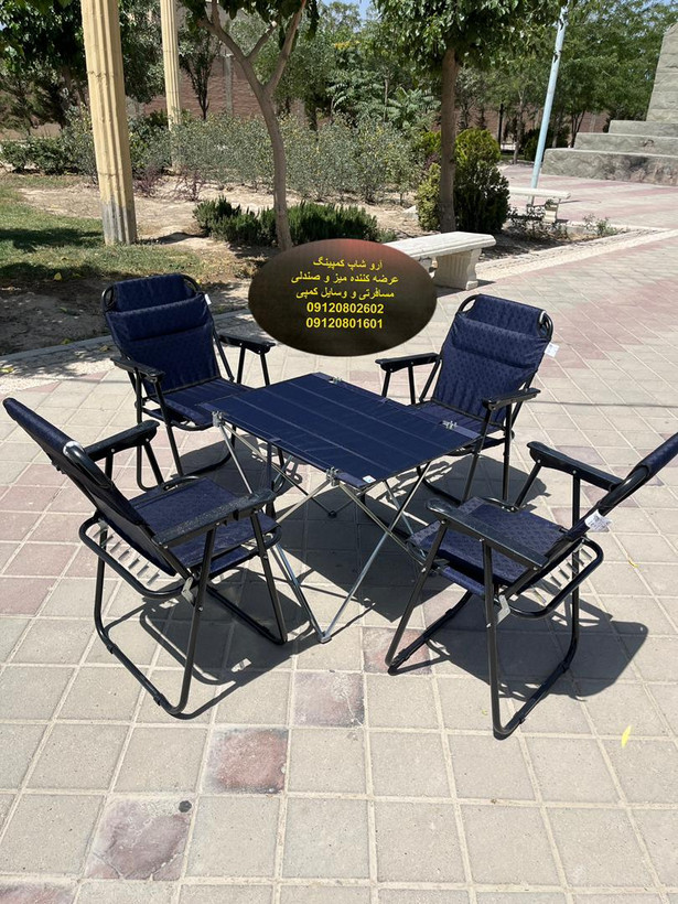 ست چهار نفره صندلی ساحلی تاشو 9 فنر و میز مسافرتی تاشو