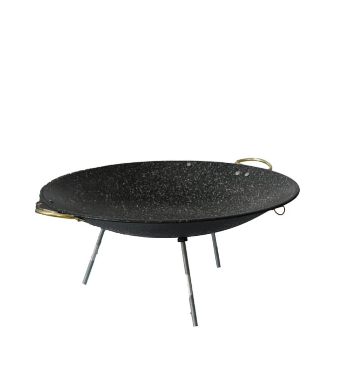 ۳. پایه دار: طراحی منحصر به فرد پایه دار، این ساج و تابه را بر روی هر نوع سطح مسطح ثابت نگه میدارد. به شما امکان میدهد بدون نگرانی از سرازیر شدن غذاها، آشپزی کنید و از تعادل بیشتری برخوردار شوید. همچنین پایه ها بصورت پیچی قابل باز شدن و بسته شدن است تا روی شعله اجاق گاز و استفاده در طبیعت و روی آتش هیزم قابل استفاده آسان باشد.