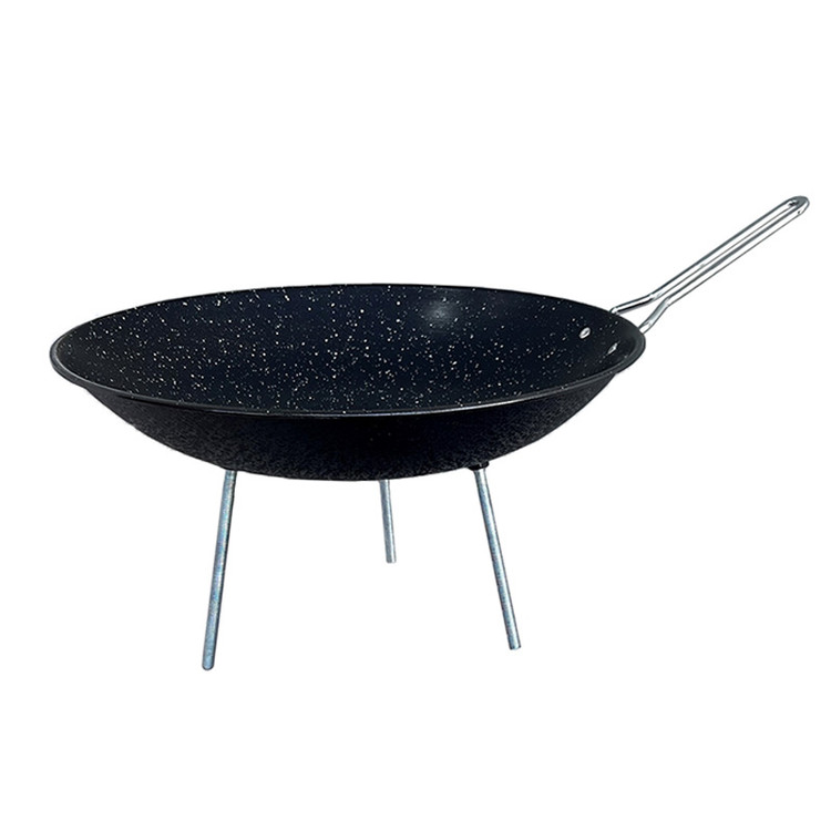 ۳. پایه دار: طراحی منحصر به فرد پایه دار، این ساج و تابه را بر روی هر نوع سطح مسطح ثابت نگه میدارد. به شما امکان میدهد بدون نگرانی از سرازیر شدن غذاها، آشپزی کنید و از تعادل بیشتری برخوردار شوید. همچنین پایه ها بصورت پیچی قابل باز شدن و بسته شدن است تا روی شعله اجاق گاز و استفاده در طبیعت و روی آتش هیزم قابل استفاده آسان باشد.