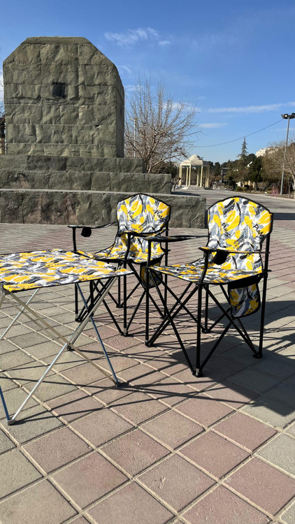 این ست میز و صندلی تاشو دو نفره شامل یک میز و دو عدد صندلی است که دارای ویژگیهای زیر است: