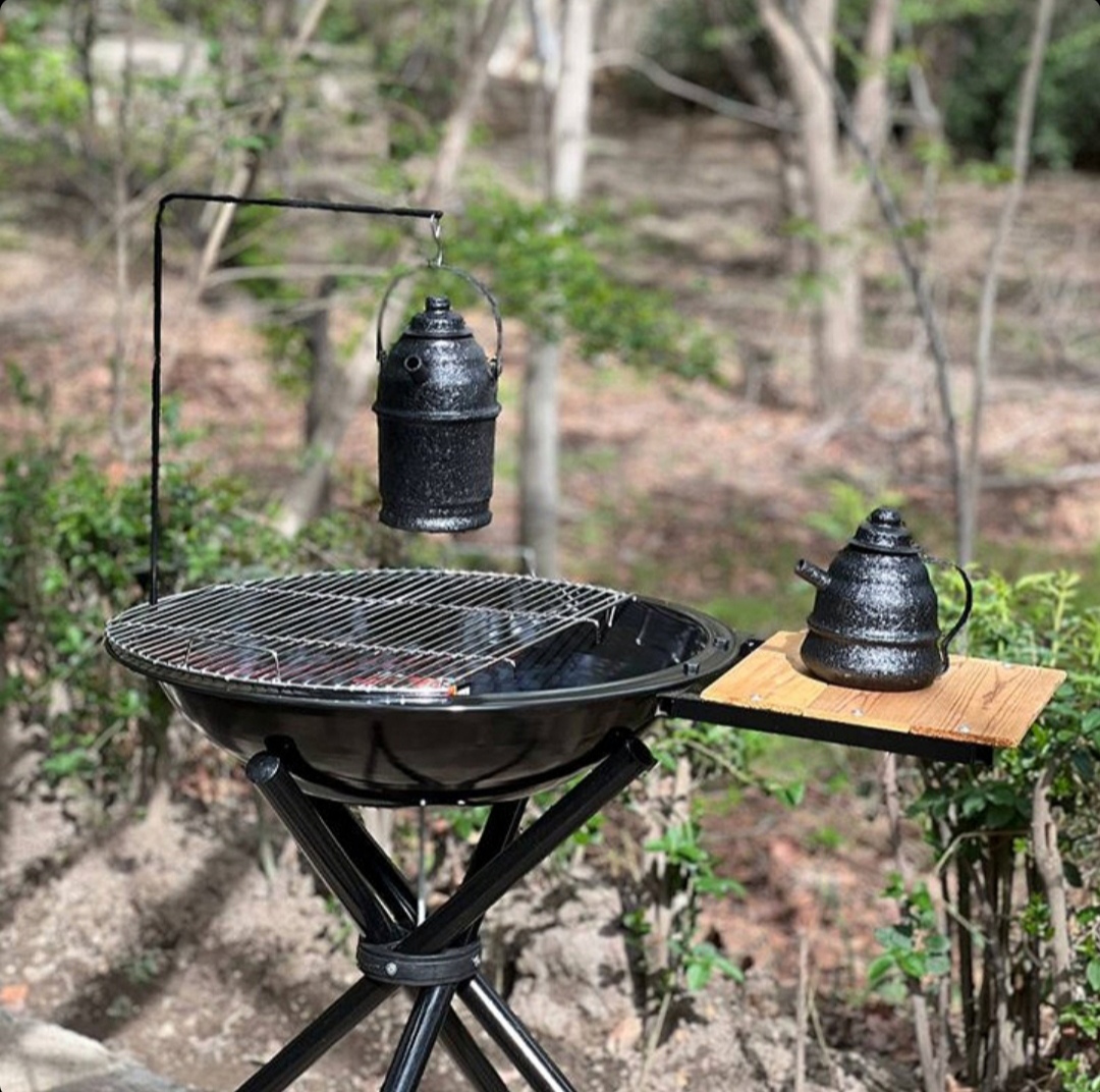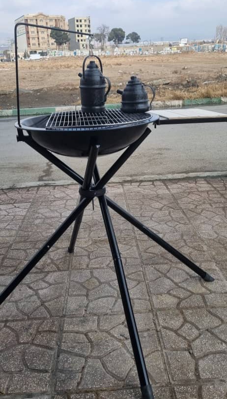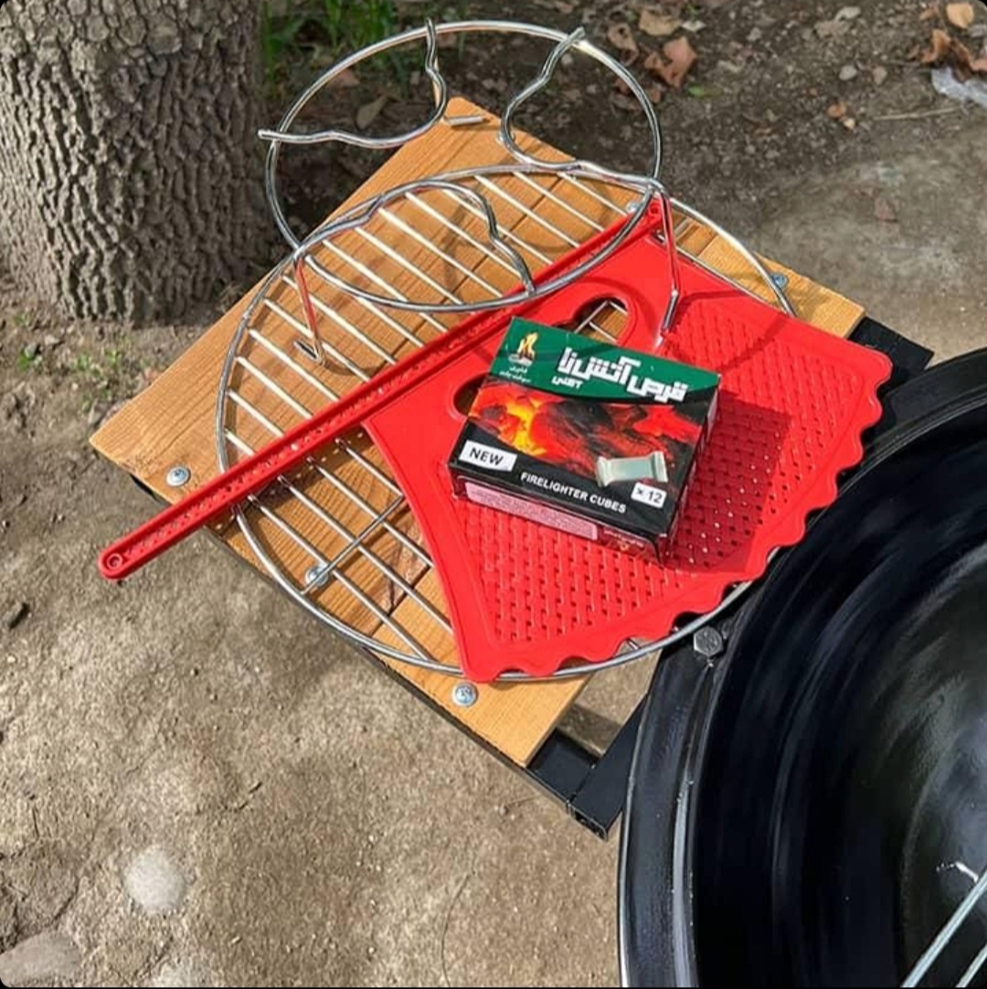 همراه با توری باربیکیو، بادبزن، پایه کتری و توری کف