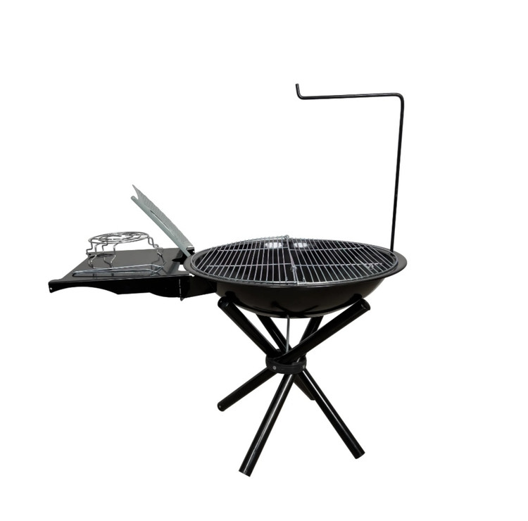 در بستهی این آتشدان همهکاره وسایل جانبی کامل و کاربردی شامل طبقه متحرک قابل نصب کنار آتشدان، میله آویز کتری، توری باربیکیو گریل، پایه کتری، توری کف، بادبزن و انبر قرار دارد. این مجموعه باعث میشود بتوانید به راحتی کباب، استیک، ماهی، برگر، سیبزمینی یا چای ذغالی را در فضای باز و در کنار خانواده و دوستان آماده کنید.