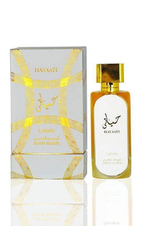 ادکلن لطافه حیاتی جواهر الذهبی سفید Lattafa hayaati Gold Elixir عطری زنانه مردانه و جذاب با رایحه گرم و شیرین کمی تلخ است. عطر ادکلن حیاتی گلد الکسیر در گروه گلی مرکباتی قرار دارد. عطر ادکلن حیاتی گلد الکسیر به دلیل طبع گرمی که دارد مناسب استفاده در روزهای سرد سال است. بطری این ادکلن مردانه و زنانه بسیار جذاب و ساده میباشد که شیشه آن به رنگ سفید و طلایی است. و روی شیشه آن کلمه Hayaati Gold Elixir Lattafa به چشم میخورد. این عطر مردانه و زنانه مناسب هدیه به آقایان و بانوان خوشتیپ و خوش سلیقه میباشد.